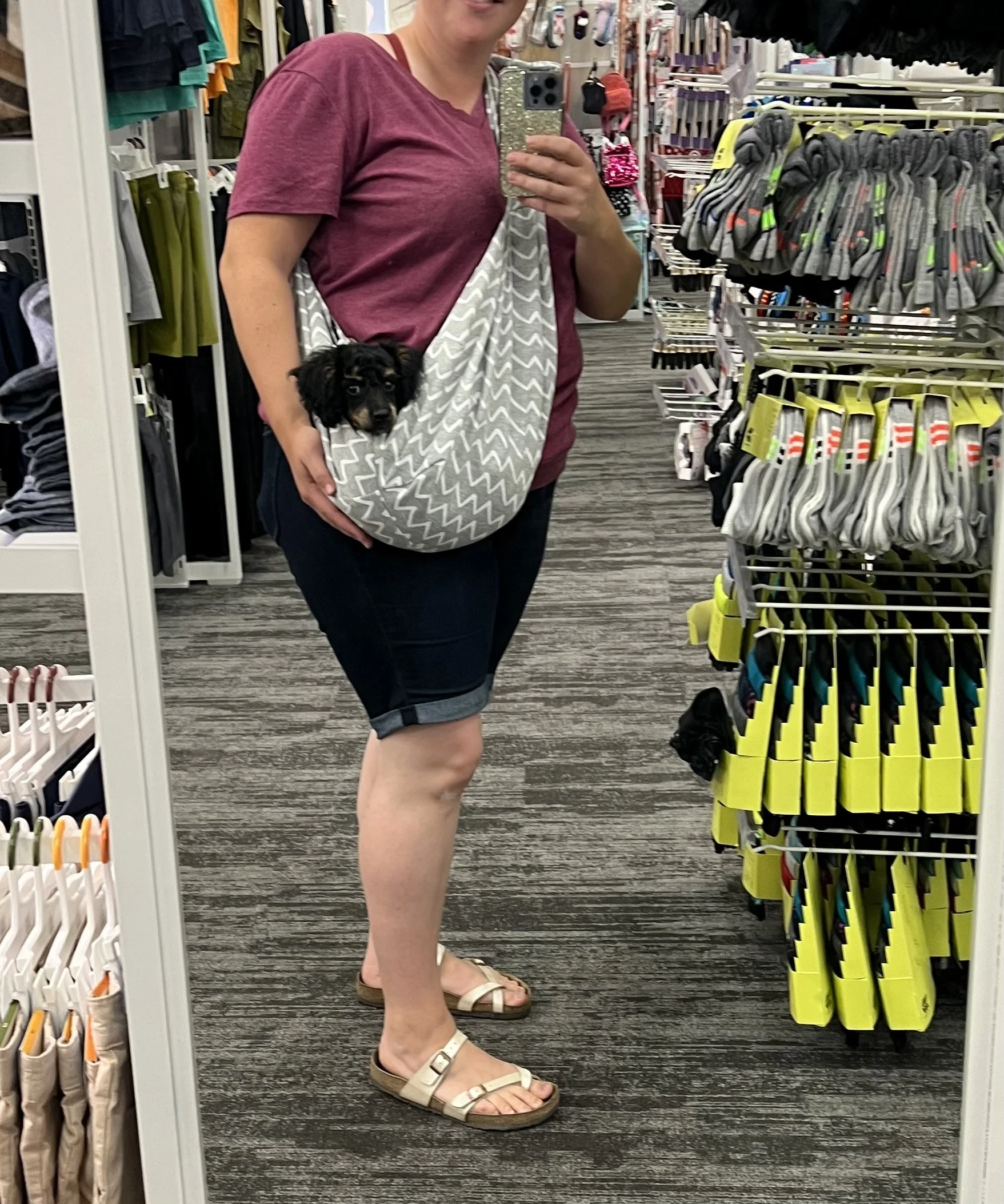 Limit outdoor exposure. Until your puppy is fully vaccinated (around 16 weeks), keep them off the ground outside your home and yard, I strongly recommend no shoes in your home till they are vaccinated fully, (I know this can be a huge challenge, but Parvo is easily transmitted on shoes). I love using puppy slings when I need to take them somewhere, which keeps them safe and comfy—plus, they love it! You can find these slings for under $20 on Amazon.